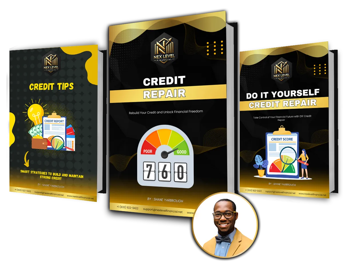 Three powerful e-books — Credit Repair, Credit Tips, and Do It Yourself Credit Repair — giving you the exact steps to fix your credit and boost your score.